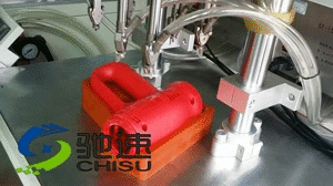 螺絲孔面是曲面時,對傳統方式沒有影響,傳統方式是手動取螺絲,然后在找螺絲孔進行鎖付,沒有鎖嘴所以不會影響到鎖付。傳統方式效率過低,切需大量人工,而一般的自動鎖螺絲機實現自動鎖付、自動送料,需要設計鎖嘴:自動送釘機將螺絲送至鎖嘴等待鎖付,鎖嘴的設計需要與產品表面平行,這樣才能保證鎖付標準,但螺絲孔需要與與水平面垂直,曲面的螺絲孔給設計帶來不便,馳速作為專業自動鎖螺絲機制造商,采用如下方案即可輕松解決。